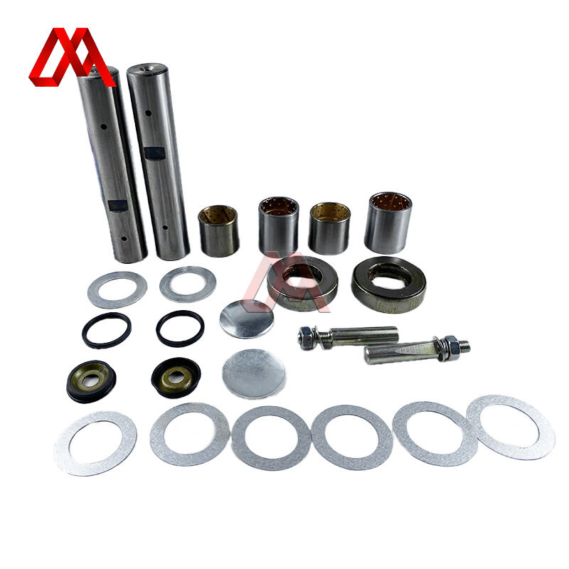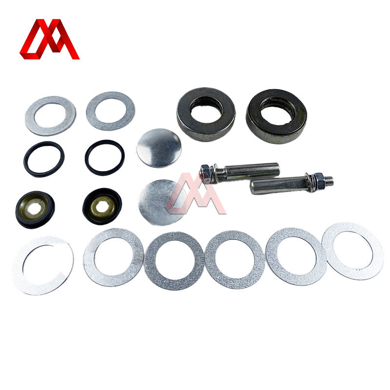 El kit de reparación contiene el pasador principal, el buje compuesto del pasador principal, el cojinete de presión, la boquilla de aceite, la junta de ajuste, el circlip, el retén de aceite, la cubierta del eje vertical y la cubierta antipolvo.